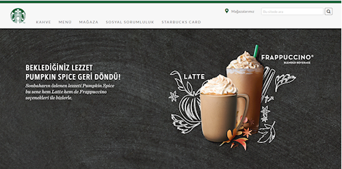 Starbucks web sitesinin ana sayfa desktop ekran görüntüsü