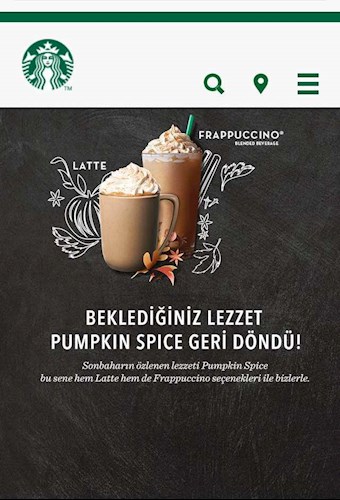 Starbucks web sitesinin ana sayfa mobil ekran görüntüsü
